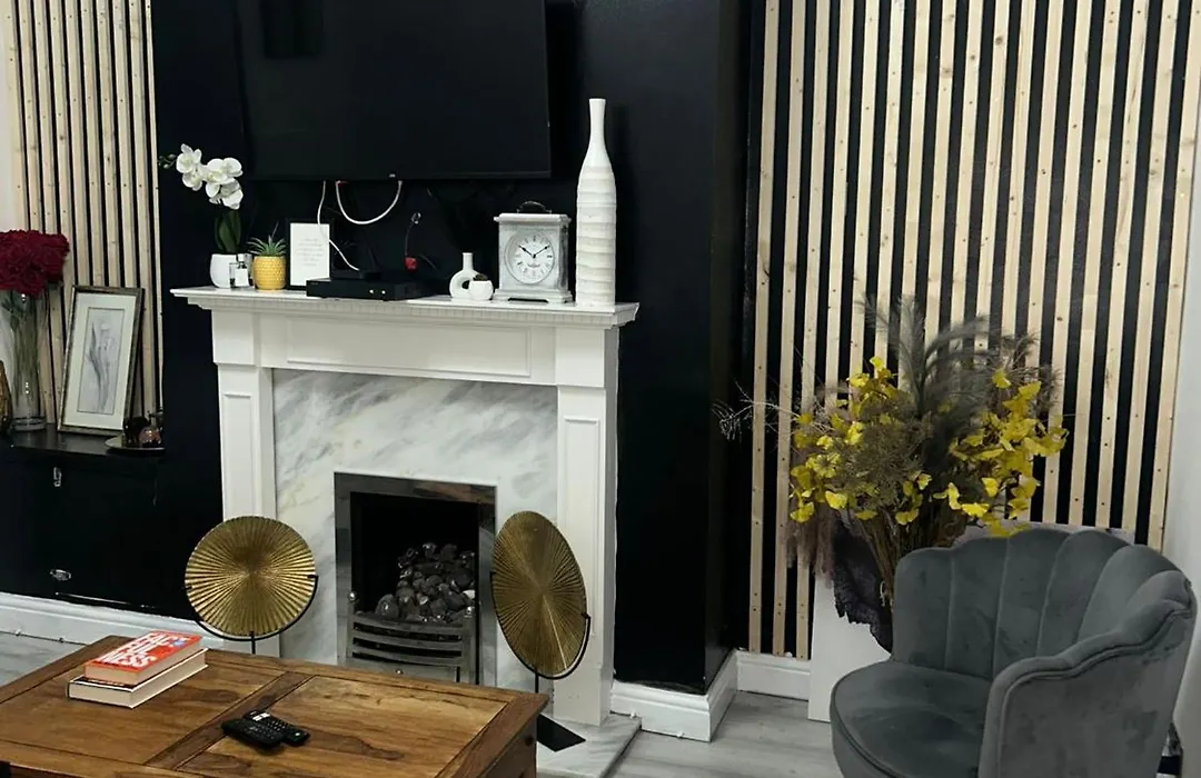 Charming Victorian Retreat 4Br House In Central Manchester Villa is furnished with a work desk, as well as a stone fireplace. Guests can indulge in media amenities, which include a flat-screen TV with satellite channels, along with climate control, for a truly comfortable stay.